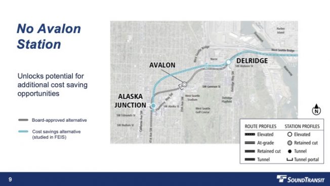 2:07 PM: In a presentation prepared for today’s Sound Transit Board System Extension Committee – meeting right now – ST staff says they can get the West Seattle Link Extension light-rail price tag down as low as $4.9 billion. The proposal would include three major components – first, dropping the Avalon station: