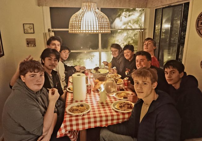 BOYS’ SWIM AND DIVE CHAMPIONSHIPS: State championships start today in Federal Way, and we’ve had reports on the local student-athletes who’ve qualified. Preparation doesn’t only happen in the pool! Last night a Chief Sealth International =High School team supporter sent us the pic of CSIHS athletes carb-loading in preparation. Good luck to all the local competitors! Ongoing results are linked here.