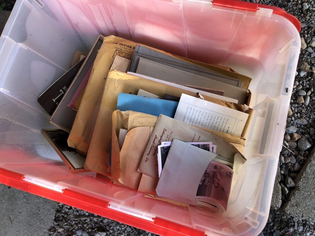 Barbara sent the photos of a bin of what looks like personal photos and documents, dumped or misplaced near Lowman Beach: