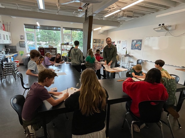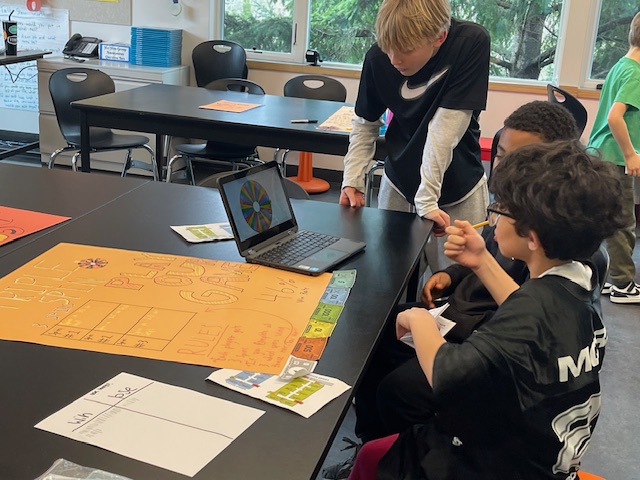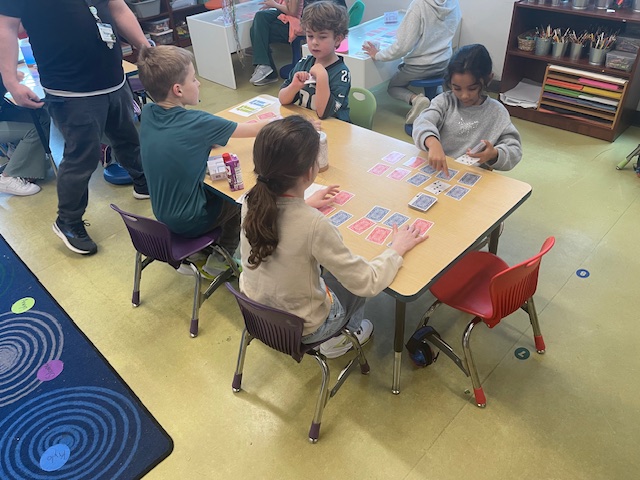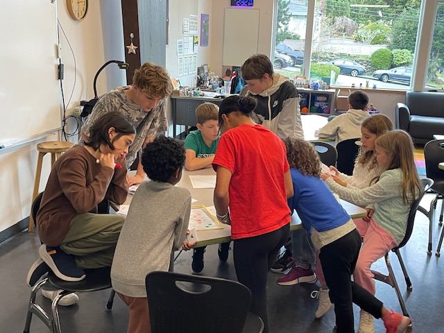 The Pack is a reference to the “Wolfpacks” program at Westside School involving students in all its grades, Pre-K through 8th, getting together at least monthly in 20 multi-age “packs,” for what the school describes as “fun activities and conversations to build community and belonging.” For “Math with the Pack” afternoon, younger and older buddies – many separated by three grades – paired up for math challenges set up in rooms around the school.