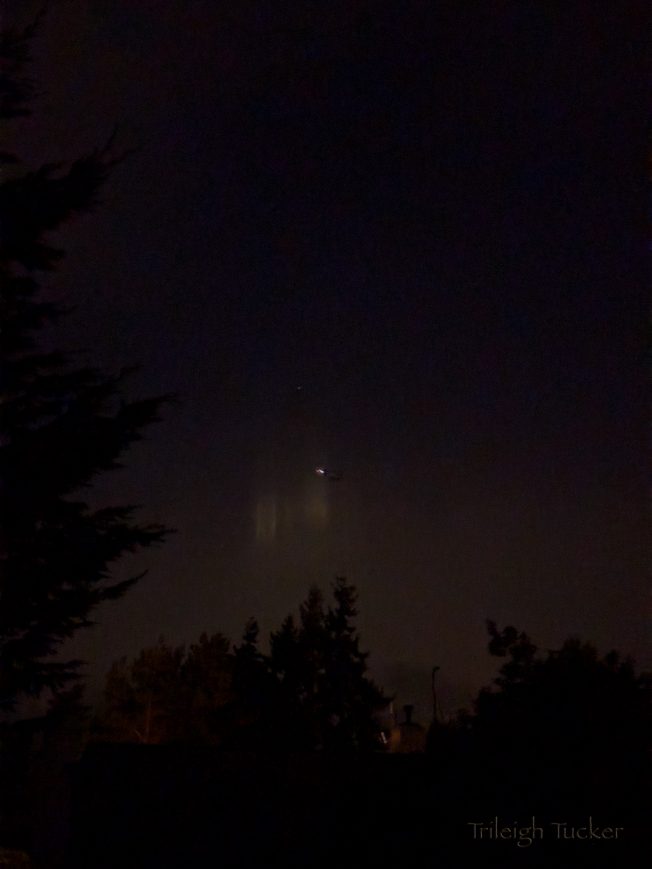 The first photo shows them as I saw them (the plane flying past them helped the camera to focus in the dark), and the second (one was) automatically lightened by my phone and shows more detail.