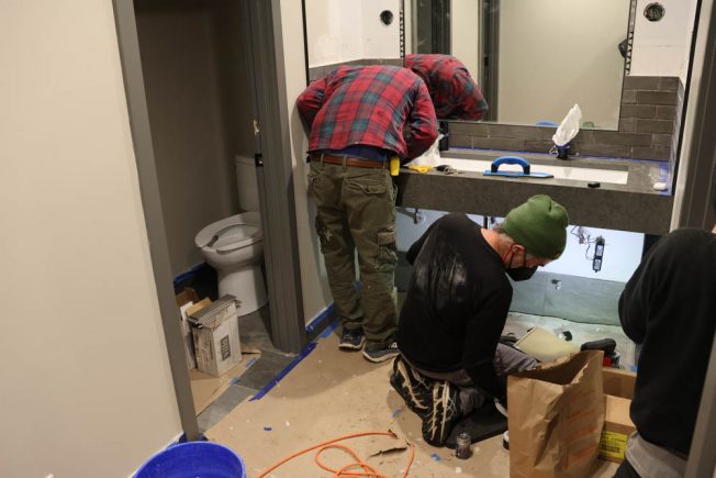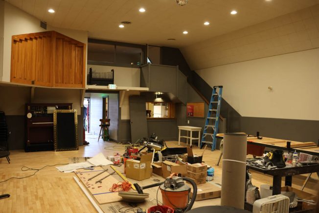 What was originally the Olympic Heights Social Hall has been closed since midsummer but not empty – it’s been a hive of renovation work, and some of it is continuing up to the last minute before the first of four reopening events, an Industry Mixer 6-8 pm tonight.