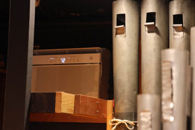 If you look closely, you’ll see HVAC equipment to keep temperature and humidity under control for the sake of the organ’s longevity: