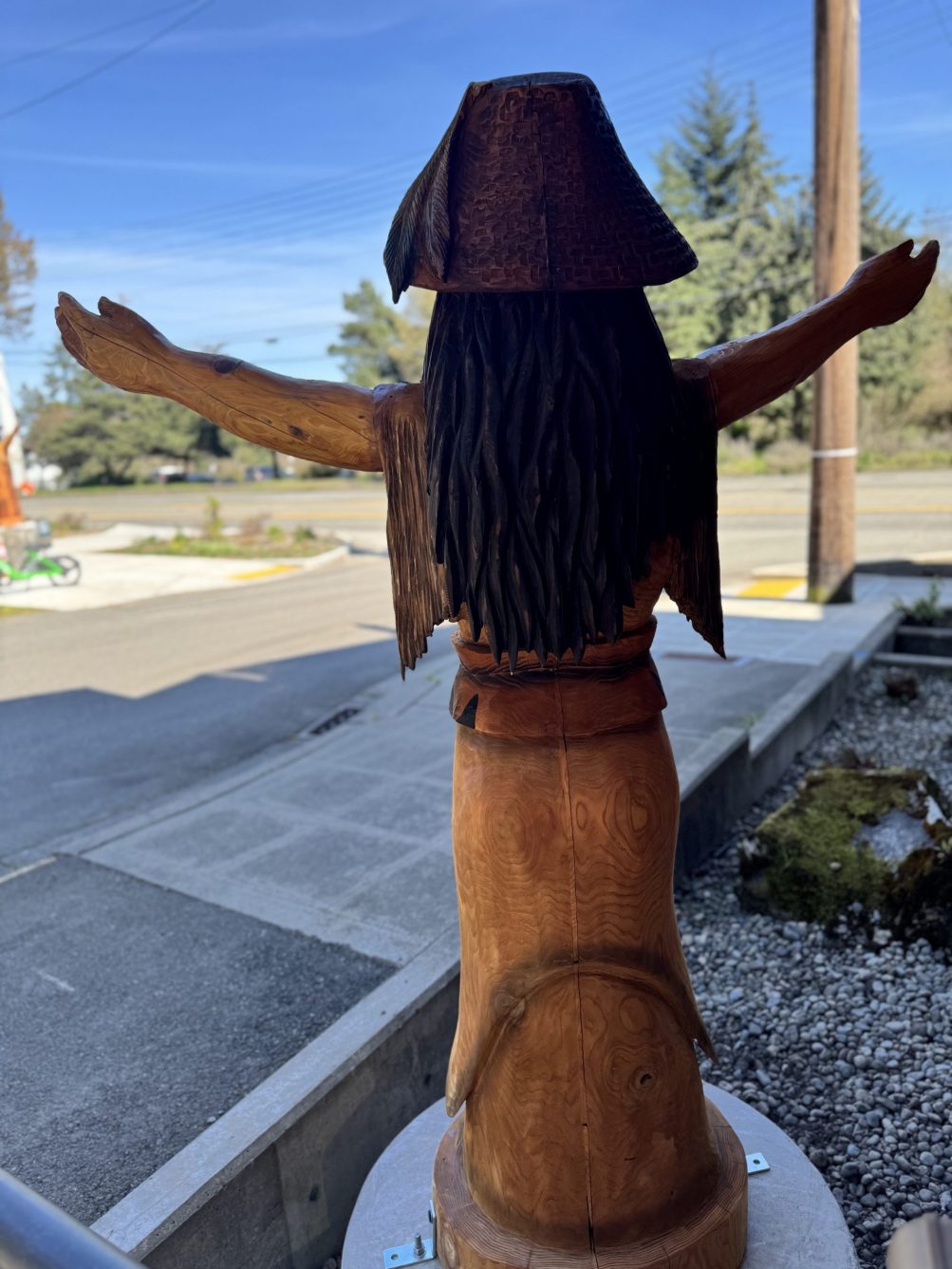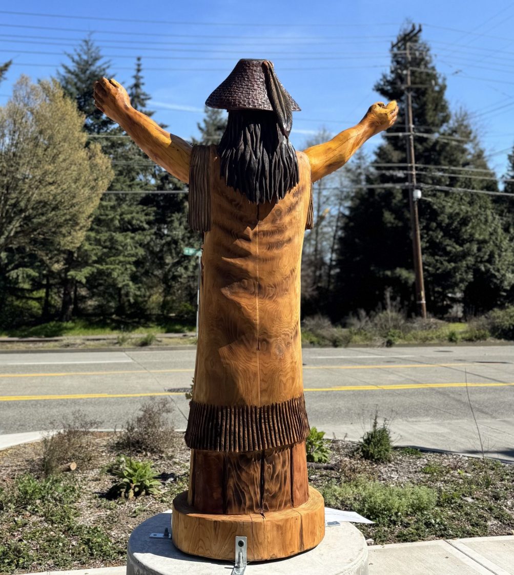 The Duwamish Tribe Longhouse and Cultural Center in West Seattle has two new reasons for you to visit – venue and events coordinator Victoria Welch sent the photos above and below of “two new welcome figures permanently installed at the Duwamish Longhouse — something we’re incredibly proud of after years of planning.”