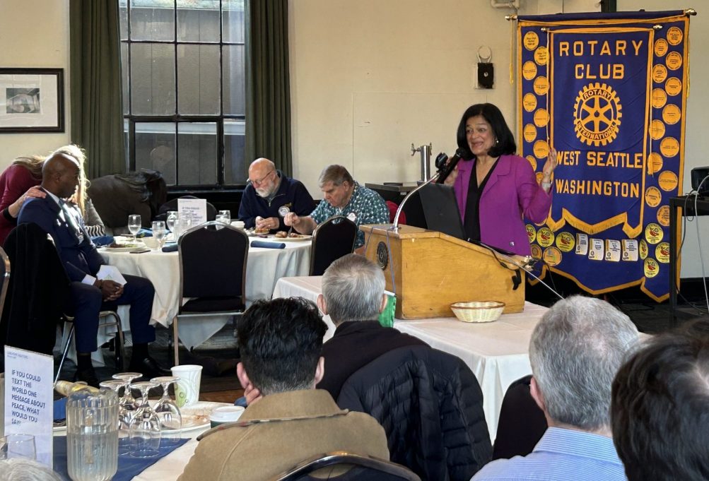 The Rotary Club of West Seattle hosted West Seattle’s highest-ranking elected official at this week’s lunch meeting.