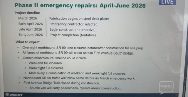 Brian Nielsen of WSDOT told the committee that they’re still on for the next repair phase to start later this month, but didn’t have an exact start date.