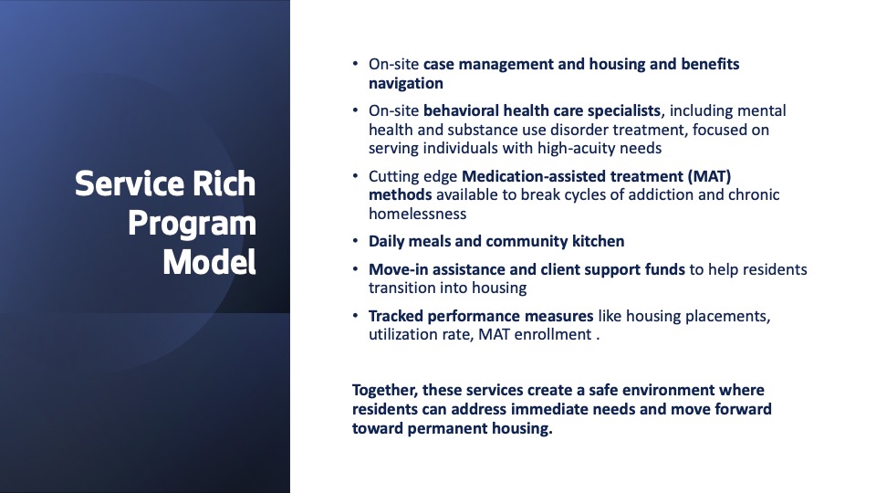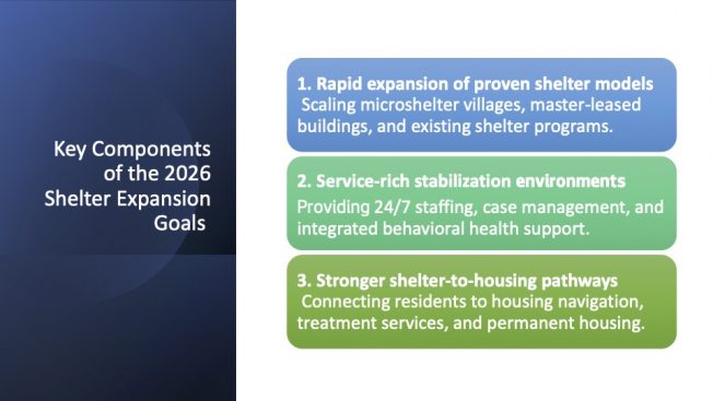 So will the city be paying for them? Strauss asked. The mayor’s-office team told him, “We’ll get back to you.” They did say part of the costs are from the plan to make these shelter facilities “service-rich environments,” explained this way: