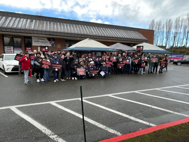 More fiery was a pep talk by April Sims, president of the Washington State Labor Council. They also heard words of support from a speaker introduced as a community-relations director from Seattle Mayor Katie Wilson‘s office, Matt McIntosh.