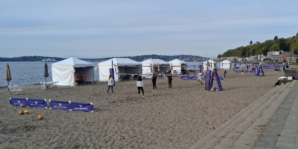 UW VOLLEYBALL AT ALKI: Second day of UW‘s beach-volleyball tournament at Alki. (56th SW and Alki SW)