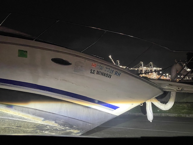 A reader told us about a new name on the landlocked boat at Don Armeni Boat Ramp, minus photo, so we went by to confirm: