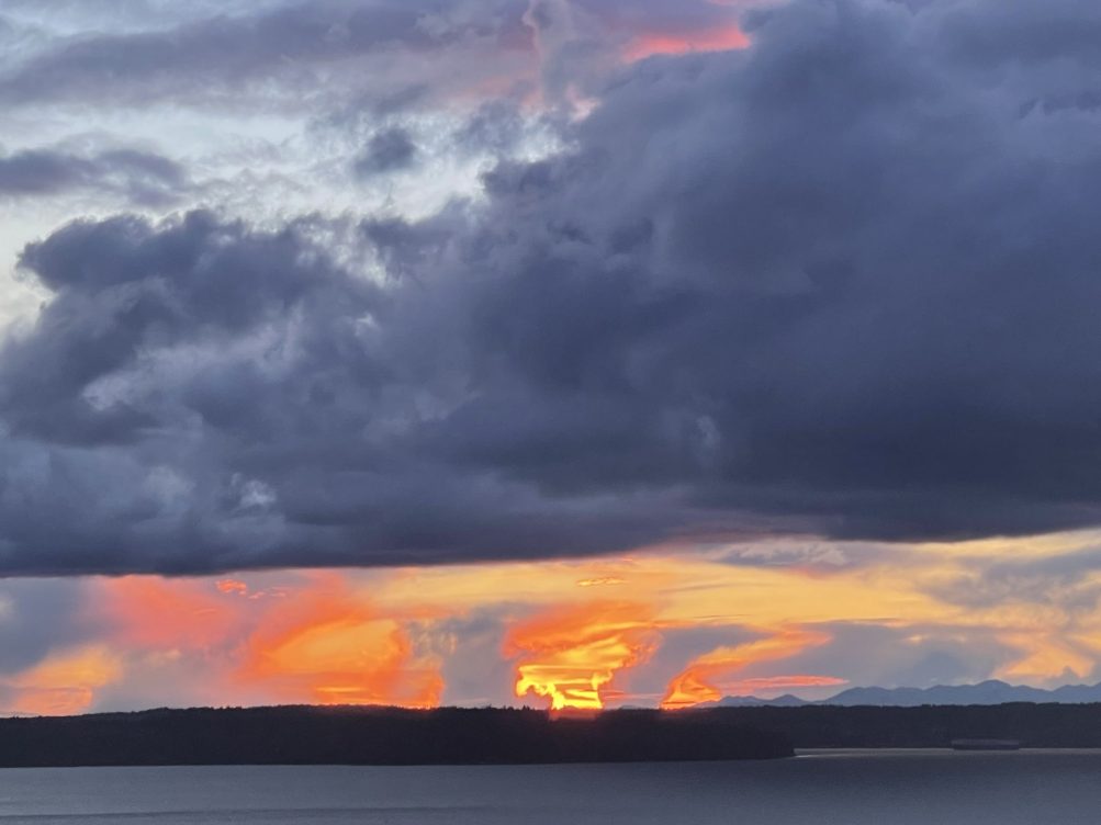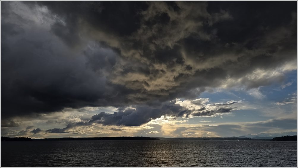 Clouds staged a double feature this afternoon, both dark and bright. The first two photos are from David Hutchinson – the very dark wall of clouds to the east, eventually followed by a thinner dark line to the west: