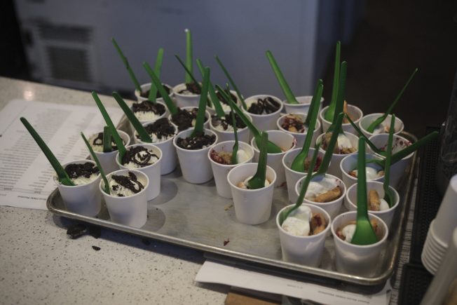 Two doors west, Molly Moon’s Ice Cream offered a mini-flight of seasonal flavors: