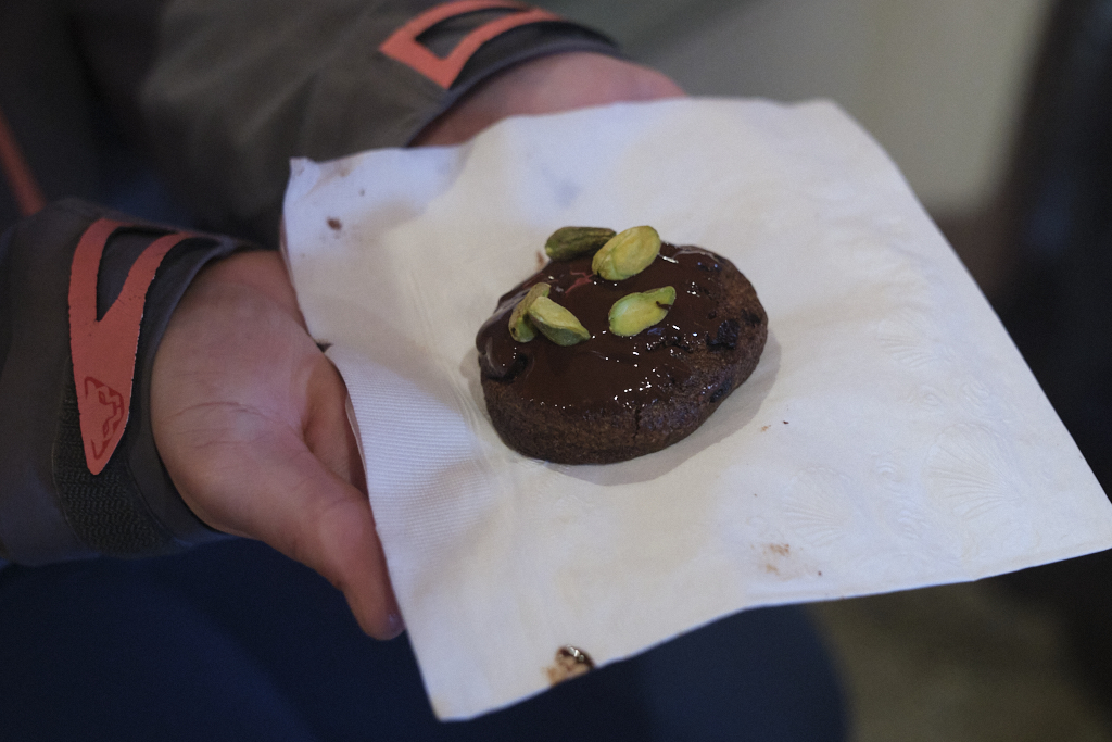 And at Top Pot Doughnuts, it was a double-chocolate treat – hot chocolate doughnut and mini hot chocolate: