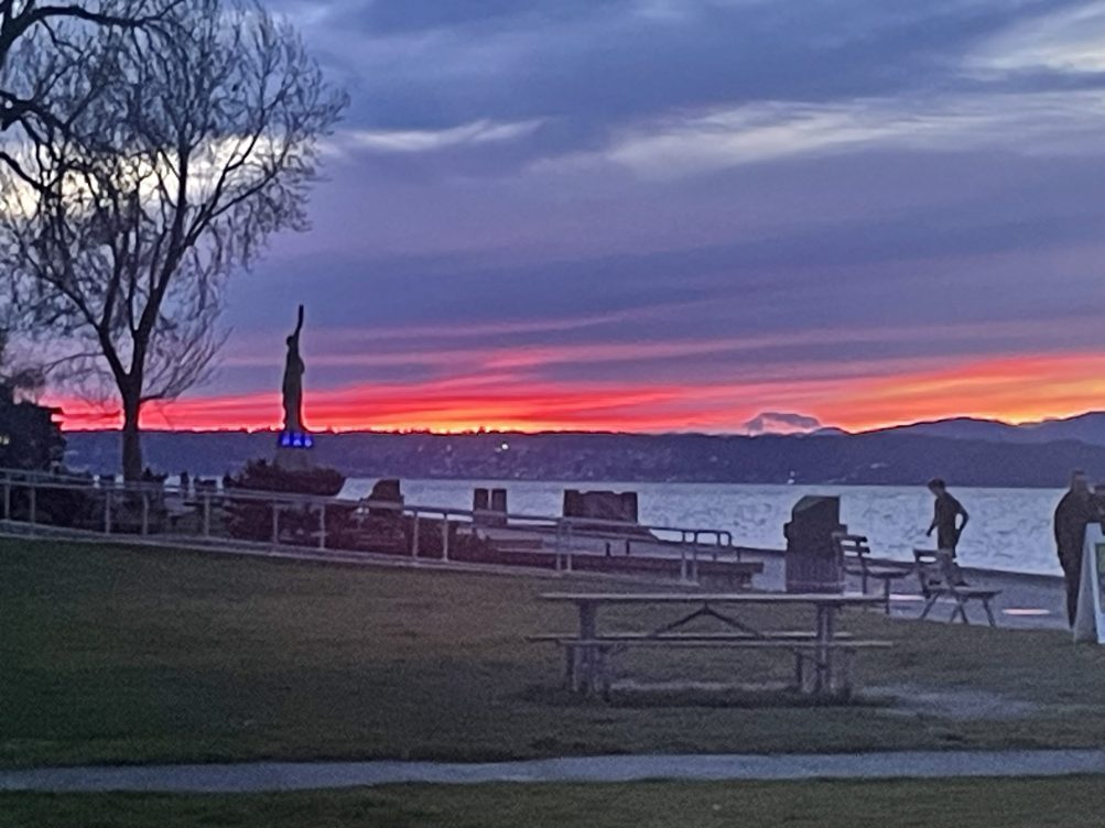 WEST SEATTLE WEEKEND SCENE: Valentine sunset, with time milestone